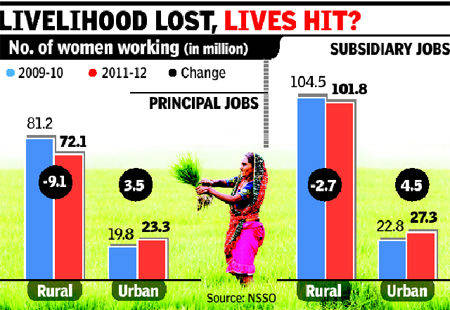 Boost manufacturing with a focus on SME’s: Women’s employment has taken an alarming dip in rural areas in the past two years, a government survey has revealed. In jobs that are done for ‘the major part of the year’, rural women lost a staggering 9.1 million jobs. This emerges from comparing employment data of two consecutive surveys conducted by the National Sample Survey Organization (NSSO) in 2009-10 and 2011-12. NDA, during 1999-2004, 60.7 million jobs were created while UPA Government, during 2004-2009, created only 2.7 million jobs. (Data source: National Sample Survey Office).