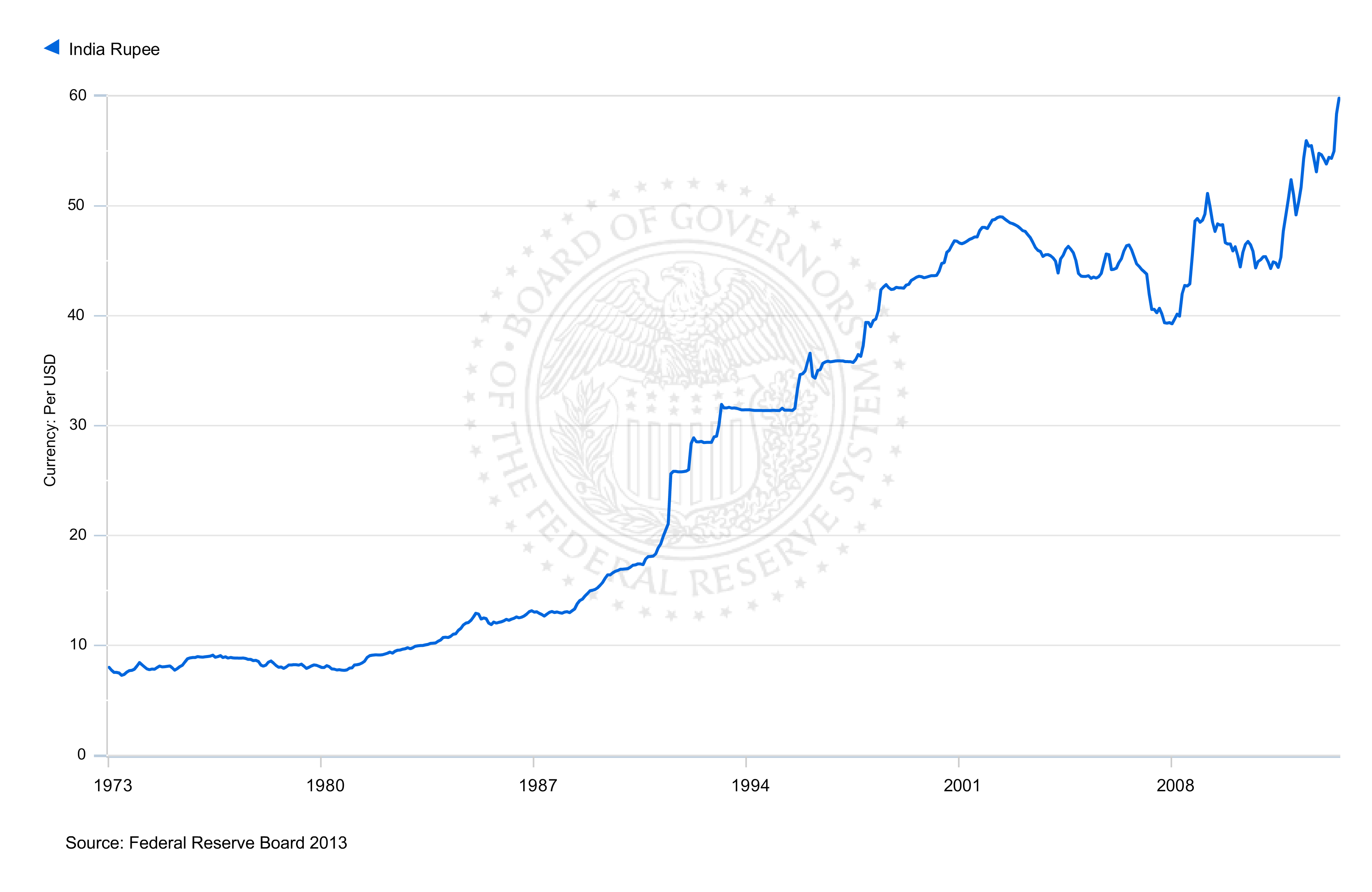 Similarly, if we compare our neighbor, China with larger population, Chinese currency has become strong. Though, I must admit, it is not a fair comparison! But the essence is, India is also intervening to control the rupee and Chinese central bank also intervenes, but I guess they have done a better job and the Chinese currency has strengthened compared to US dollar over the past decade and the Indian rupee has not just been weakened, it has been ‘hammered’, and continues to be the worst performing currency in Asia. We can compare Malaysian Ringgit, Singapore dollar or UAE Dirham. All these currencies have strengthened against the Indian rupee
